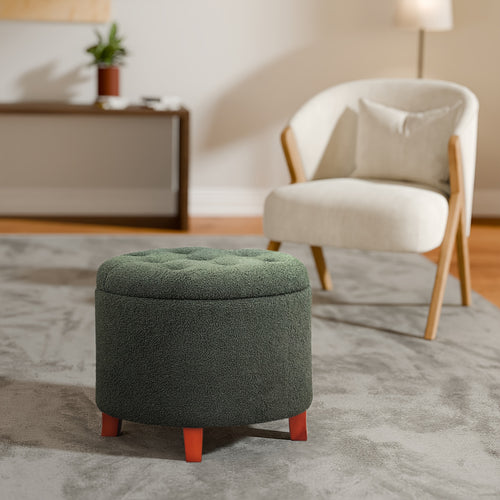 Small Ottomans, 100% Hand Knitted Pouf, Round Footrest with 4 Non-Skid Wood Legs, Boho Decor Cotton Rope Pouffe Beside Sofa, Leisure Floor Step Chair for Living Room -